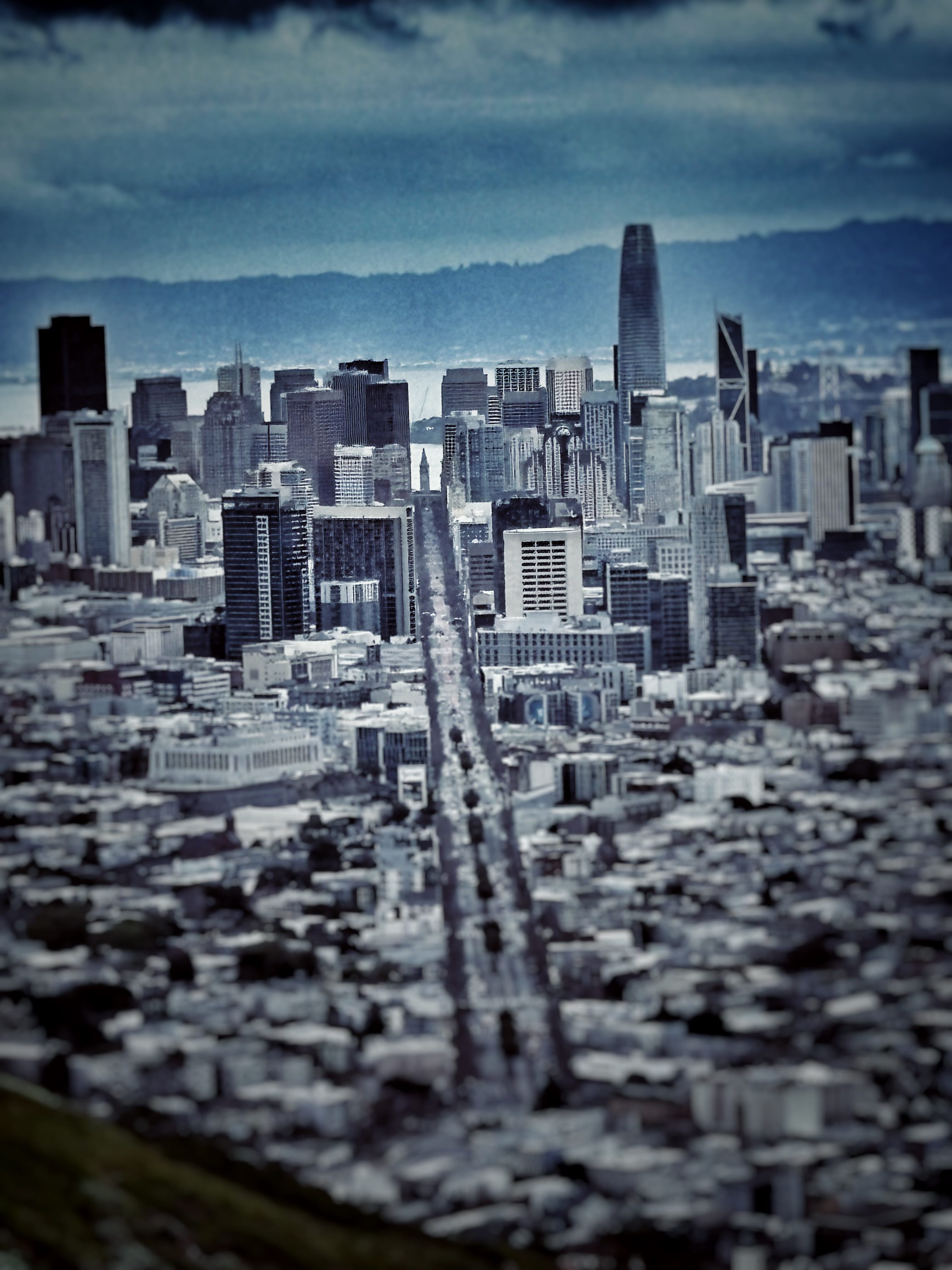 The truth is that I’m probably the zillionth person to take a photo like the one below…. perched high above San Francisco at Twin Peaks, looking down Market Street and spotting the Ferry Building